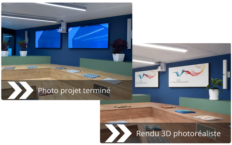 Nous créons des high-quality 3D views to allow our clients to immediately picture themselves in their future audiovisual space.