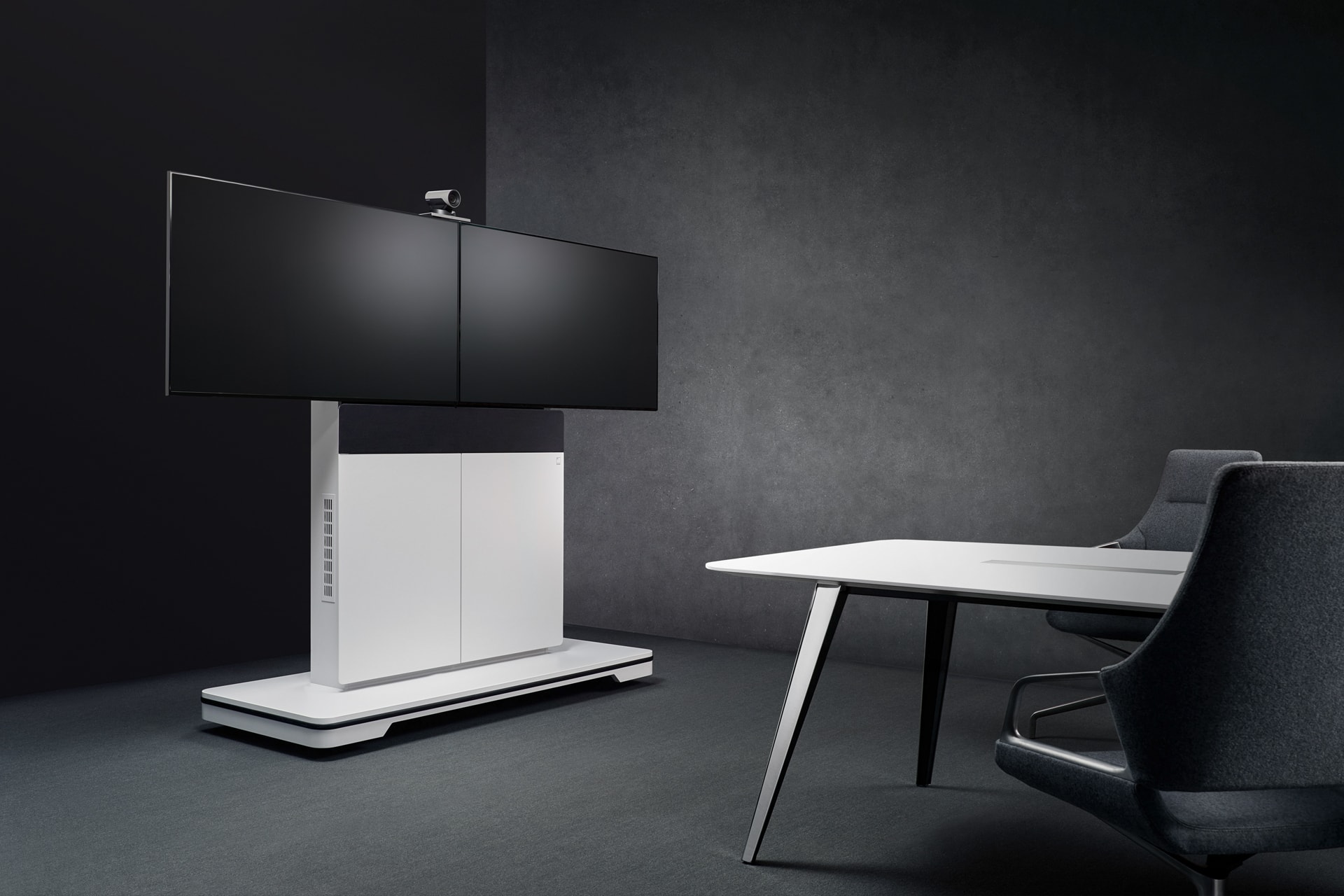 The UC-Display Column_W8 is a larger version of the W6, designed for medium to large meeting rooms. It provides the same seamless integration of audiovisual technologies, with a height-adjustable display mounting bracket and structured lacquer finish options. Its modular design enables customisation to match each space’s specific requirements while maintaining a consistent, elegant aesthetic. The W8 is ideal for environments that require a high-performance AV solution with a visually harmonious presence.