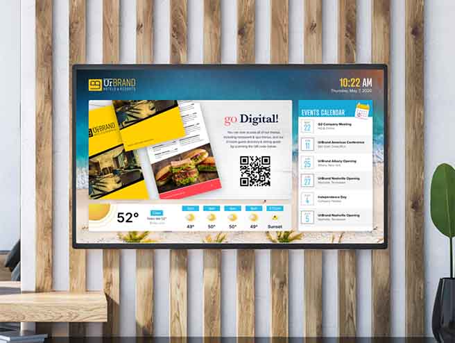 Digital signage is a powerful tool to strengthen internal communication, improve customer experience, deliver high-impact messaging and energize your environments.